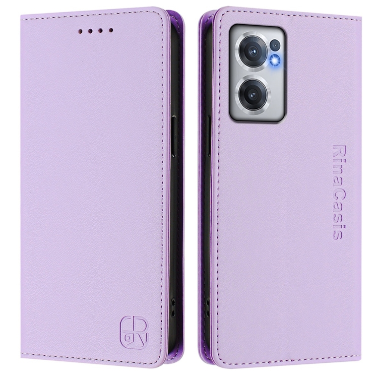 Funda de Cuero con Doble Pliegue y Succión Magnética RFID para OnePlus Nord CE 2 5G Rc01 (Morado Claro)