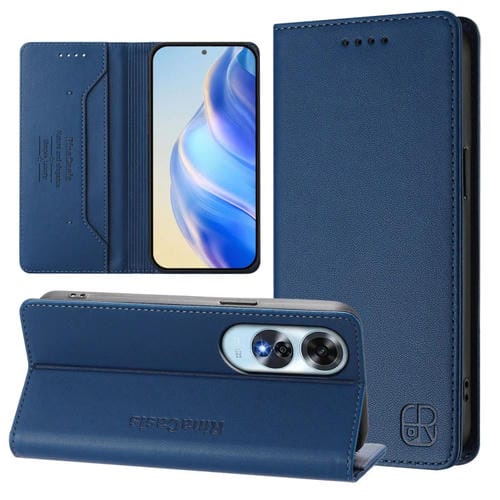 Funda de Cuero con Doble Pliegue y Succión Magnética Rfid para Oppo A60 4G Global Rc01 (Azul Oscuro)