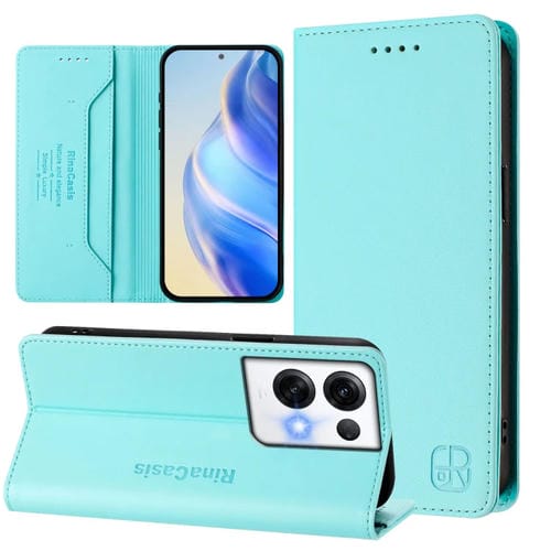 Funda de Cuero con Doble Pliegue y Succión Magnética Rfid para Oppo Reno8 Pro 5G Global Rc01 (Verde Menta)
