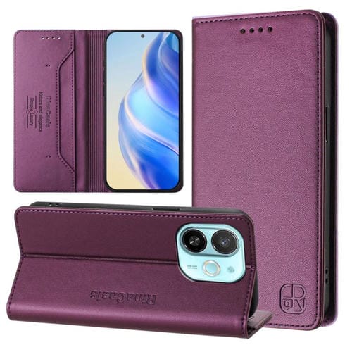 Funda de Cuero para Tecno Spark 30C 5G y Pop 9 5G Rc01 con Doble Pliegue y Cierre Magnético (Violeta)