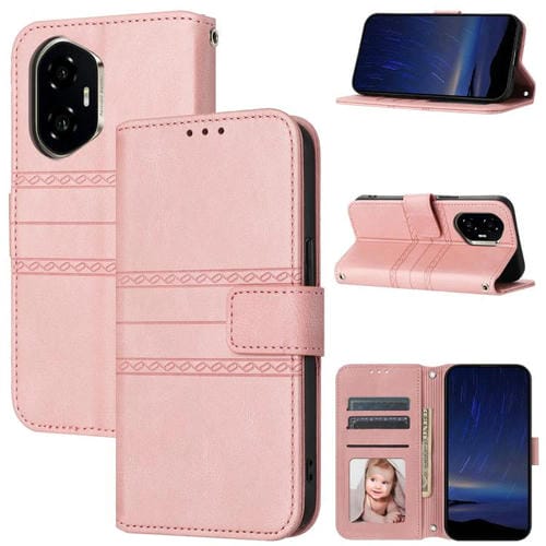 Funda de Cuero con Efecto Piel y Rayas en Relieve para Honor 300 (Rosa)