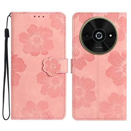Funda de Cuero con Estampado de Flores En Relieve para Xiaomi Poco C61 (Rosa)