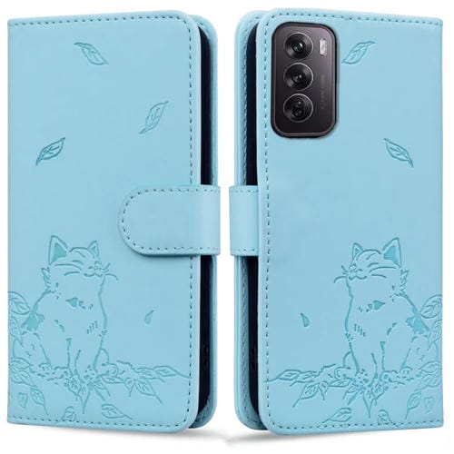 Funda de Cuero con Estampado de Gato Lindo para Oppo Reno12 5G Global (Azul Cielo)