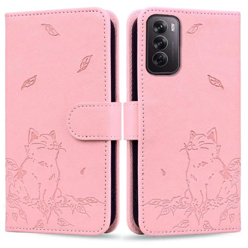 Funda de Cuero con Estampado de Gato Lindo para Oppo Reno12 Pro 5G Global (Rosa)