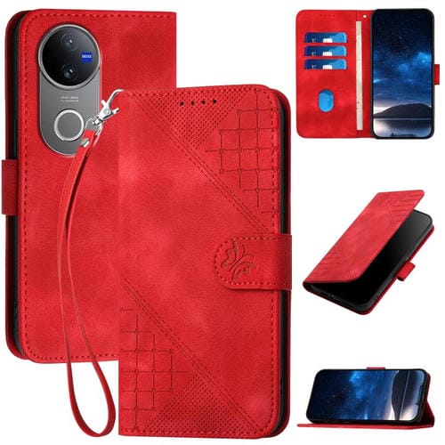 Funda de Cuero con Estampado de Mariposas En Relieve y Cordón para Vivo V50 (Roja)