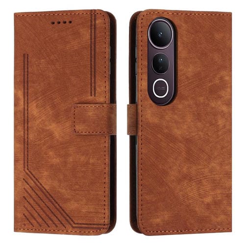 Funda de Cuero con Estampado de Rayas y Cordón para Vivo V50 Lite (Marrón)