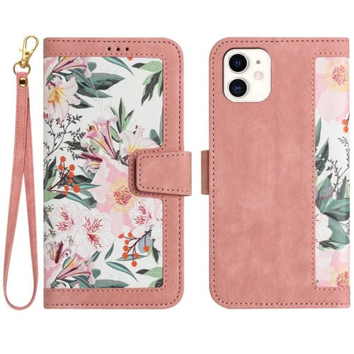 Funda de Cuero para iPhone 11 Estampado Floral con Cordón (Rosa)