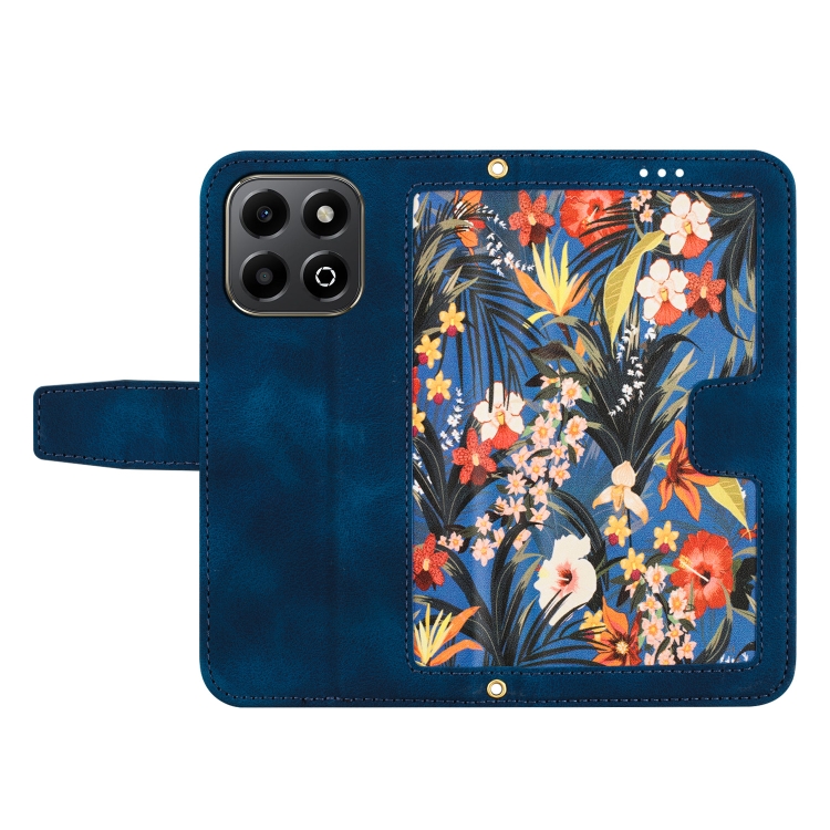 Funda de Cuero con Estampado Floral y Cordón para Honor X6B (Azul Oscuro)