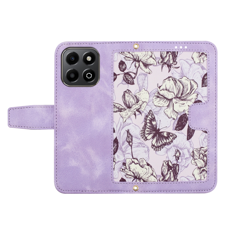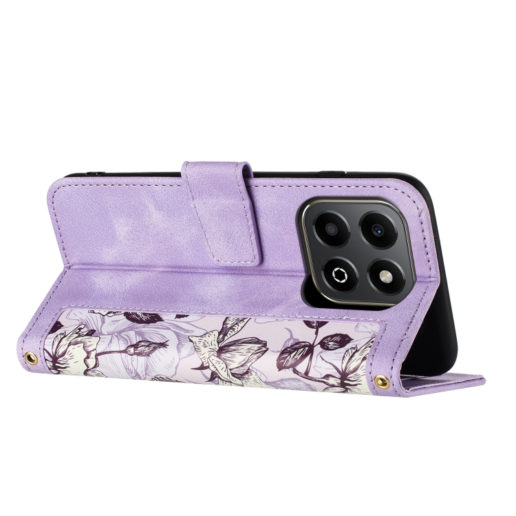 Funda de Cuero con Estampado Floral y Cordón para Honor X6B (Morado Claro)
