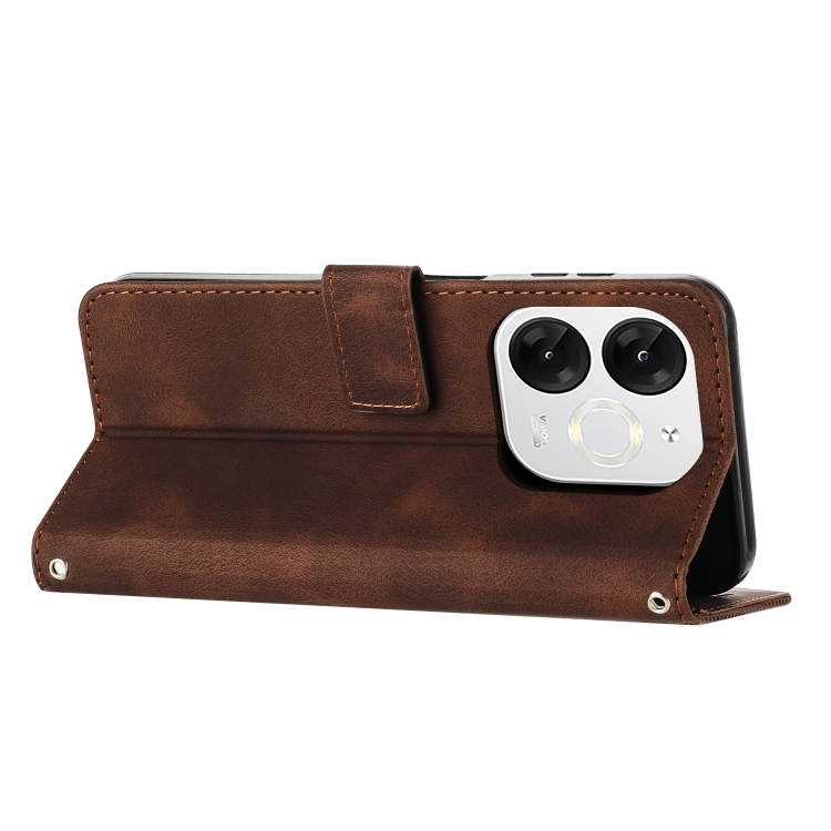 Funda de Cuero Triangular para Teléfono Itel A80 Dream con Cordón Largo (Marrón)