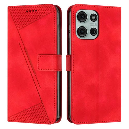 Funda de Cuero Triangular para Motorola Moto G75 Dream con Cordón (Rojo)