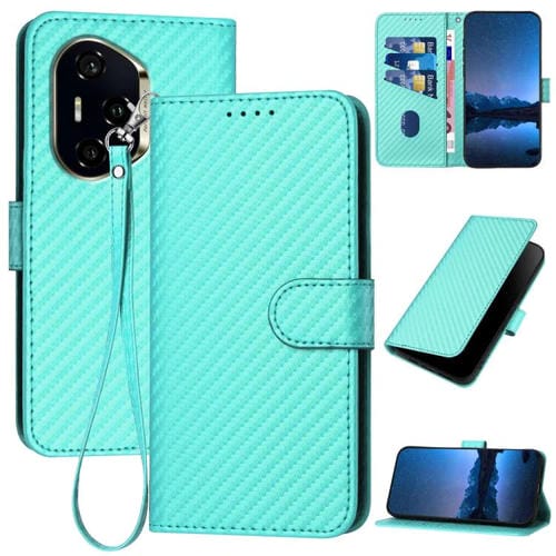 Funda de Cuero con Hebilla de Fibra de Carbono y Cordón para Honor 300 Pro y Ultra Yx0070 (Azul Claro)