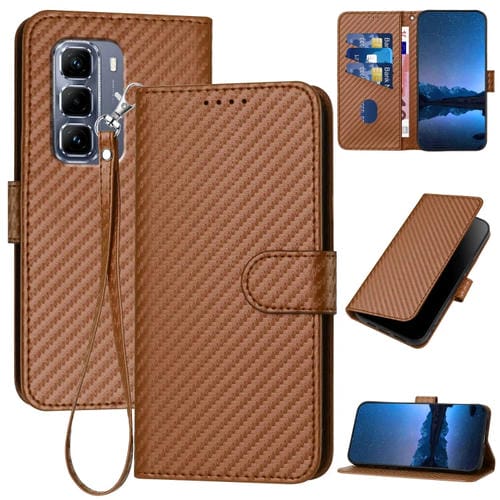 Funda de Cuero con Hebilla de Fibra de Carbono y Cordón para Infinix Hot 50 Pro+ 4G Yx0070 (Café)