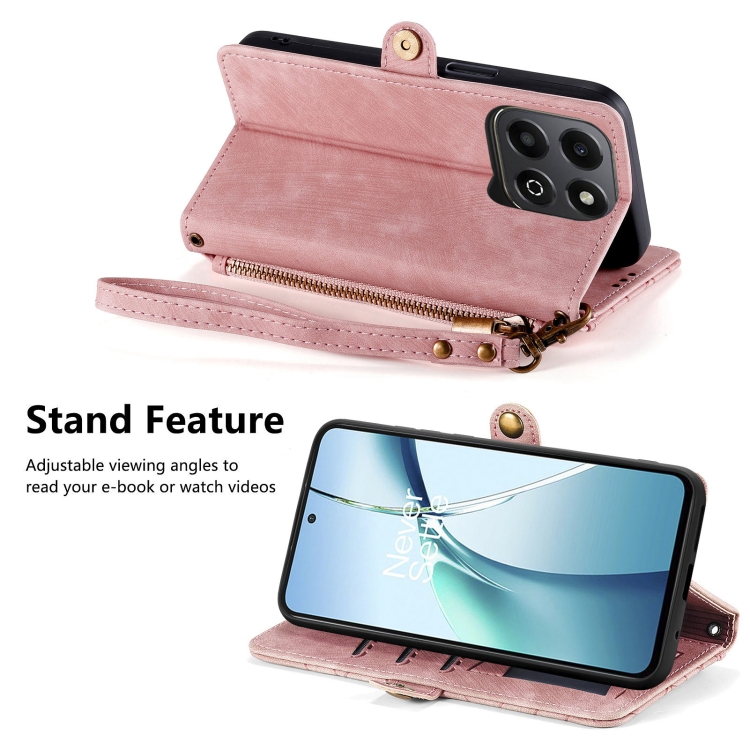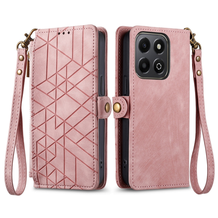Funda de Cuero para Honor 200 con Hebilla Lateral y Cierre Geométrico Inteligente (Rosa)