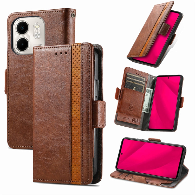Funda de Cuero con Hebilla Magnética Doble para Infinix Smart 9 Caseneo Splicing (Marrón)