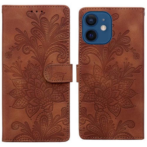 Funda de Cuero con Hebilla Magnética y Diseño Floral En Relieve para iPhone 12 Mini/13 Mini (Marrón)
