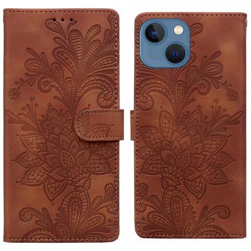 Funda de Cuero para iPhone 15 con Hebilla Magnética y Diseño Floral en Relieve (Marrón)