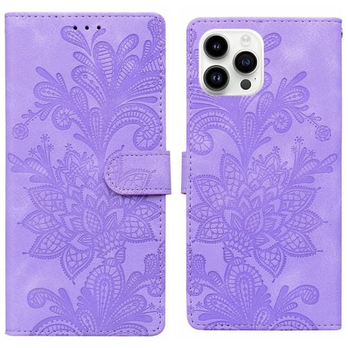 Funda de Cuero para iPhone 15 Pro con Hebilla Magnética y Diseño Floral en Relieve (Morado)