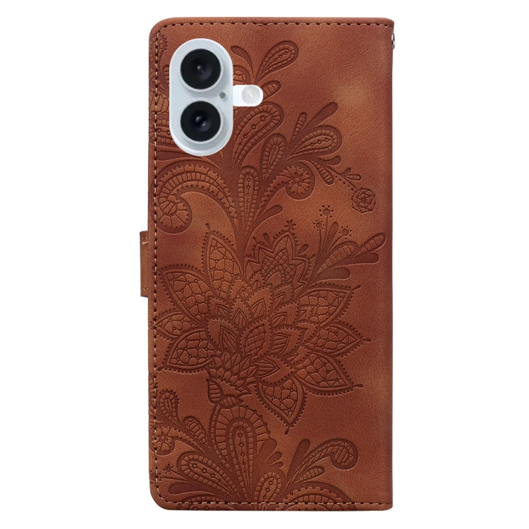 Funda de Cuero para iPhone 16 con Hebilla Magnética y Diseño Floral en Relieve (Marrón)
