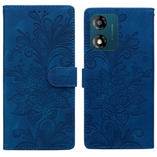 Funda de Cuero con Hebilla Magnética y Diseño Floral para Motorola Moto E13 (Azul)