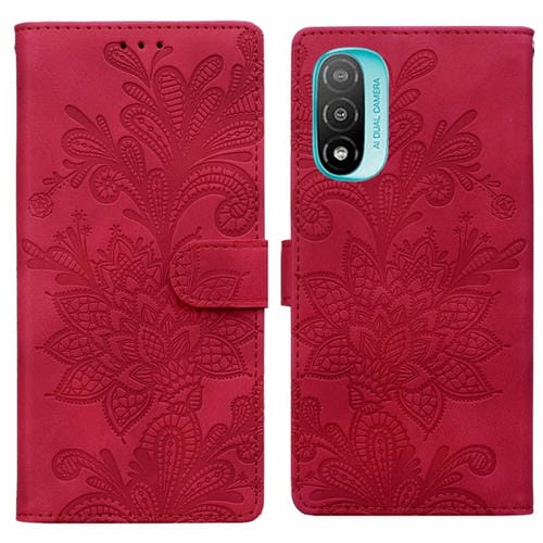 Funda de Cuero con Hebilla Magnética y Diseño Floral para Motorola Moto E20 (Rojo)