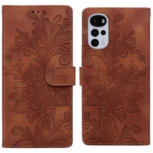 Funda de Cuero con Hebilla Magnética y Diseño Floral para Motorola Moto G22 (Marrón)