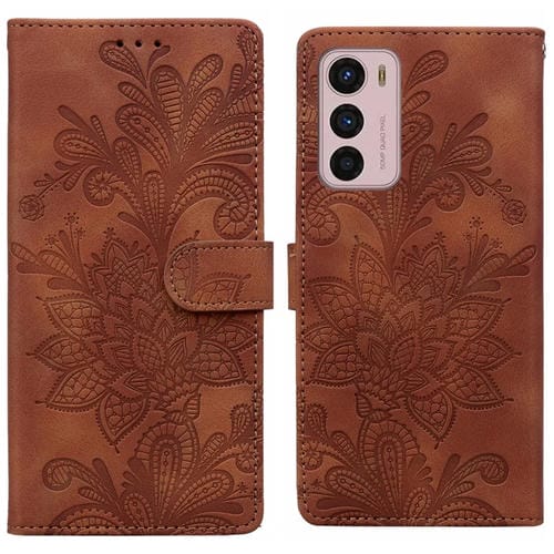 Funda de Cuero para Motorola Moto G42 con Hebilla Magnética y Diseño Floral En Relieve (Marrón)