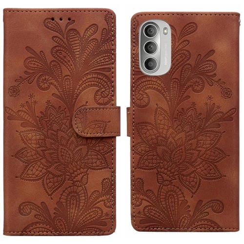 Funda de Cuero con Hebilla Magnética y Diseño Floral para Motorola Moto G51 5G (Marrón)