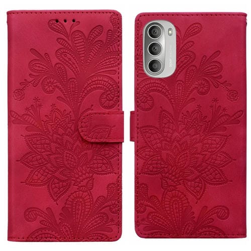 Funda de Cuero con Hebilla Magnética y Diseño Floral para Motorola Moto G51 5G (Rojo)
