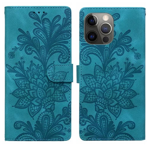 Funda de Cuero para iPhone 11 Pro con Hebilla Magnética y Encaje Floral en Relieve (Verde)