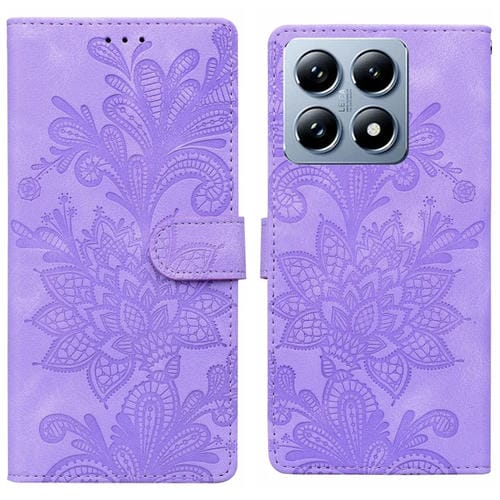 Funda de Cuero con Hebilla Magnética y Encaje Floral En Relieve para Xiaomi 14T Pro (Morado)