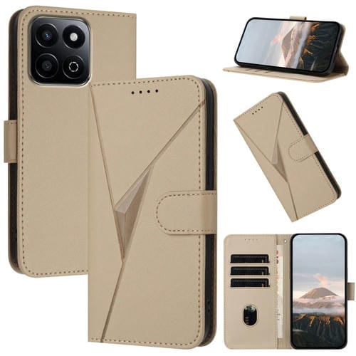 Funda de Cuero con Hebilla y Diseño de Triángulos para Honor 200 5G (Dorada)