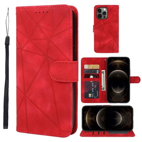 Funda de Cuero iPhone 12 Pro Max Líneas Geométricas Tacto Sedoso (Rojo)
