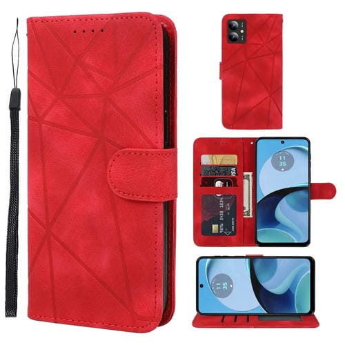 Funda de Cuero para Motorola Moto G14 con Líneas Geométricas y Tacto Suave (Rojo)