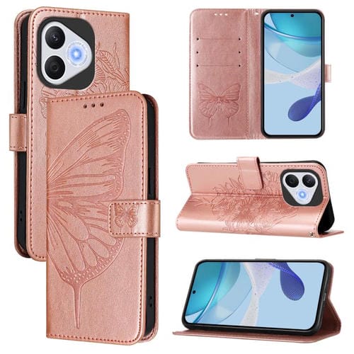 Funda de Cuero con Mariposa en Relieve para Honor 400 Lite (Oro Rosa)