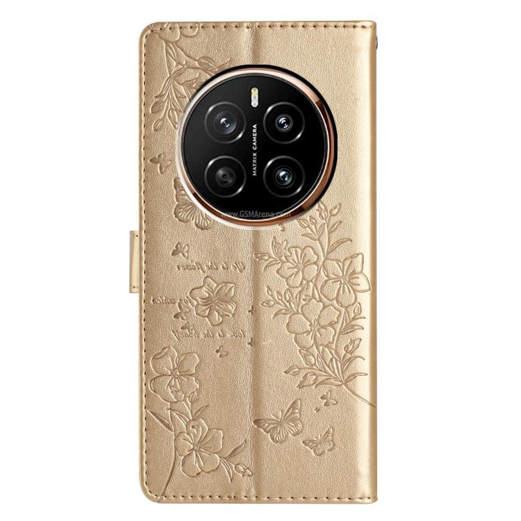 Funda de Cuero para Honor Magic7 con Mariposas y Flores (Dorada)