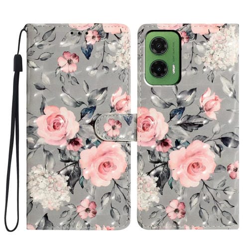 Funda de Cuero con Patrón 3D para Motorola Moto G35 (Flor de Base Gris)