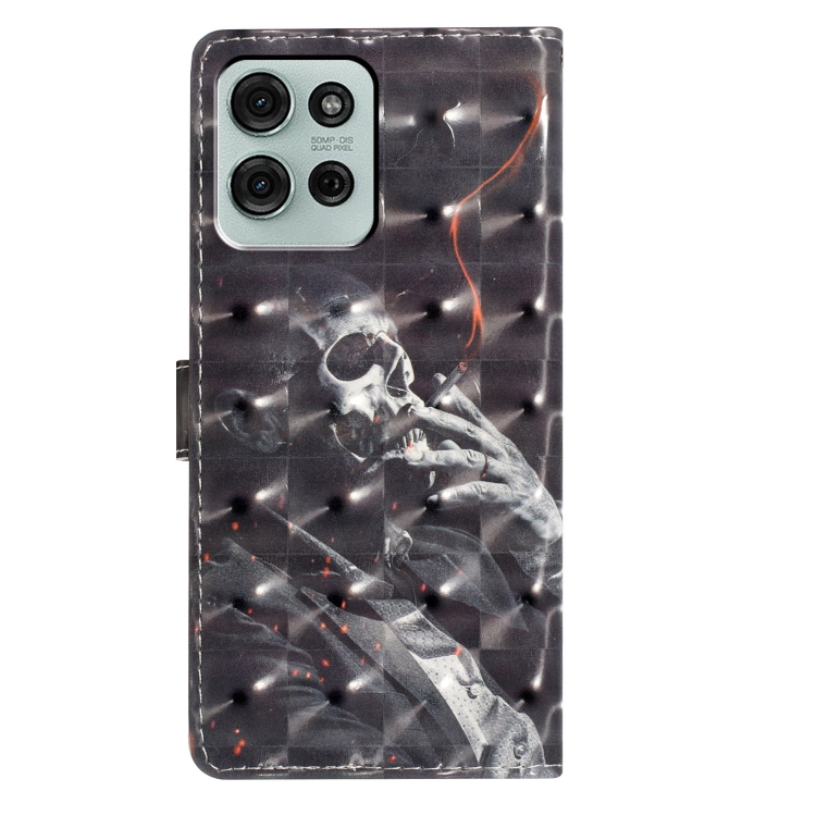 Funda de Cuero con Patrón 3D para Motorola Moto G75 5G (Calavera)