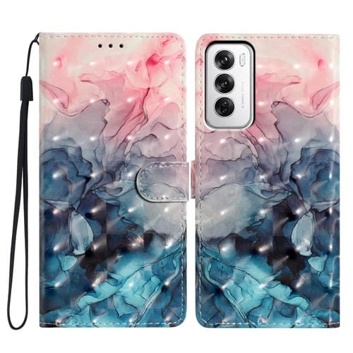 Funda de Cuero con Patrón 3D para Teléfono Oppo Reno12 Global (Mármol Azul Rosa 3D)