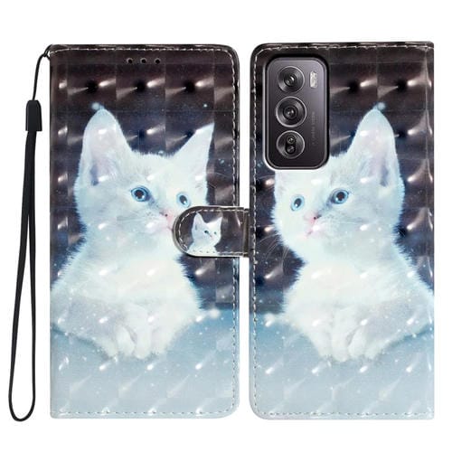 Funda de Cuero con Patrón 3D para Teléfono Oppo Reno12 Pro Global (Gato Blanco)