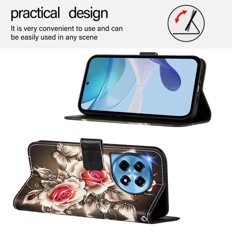 Funda de Cuero para OnePlus 12 5G Global con Patrón de Dibujo de Colores (Rosas Sobre Negro)