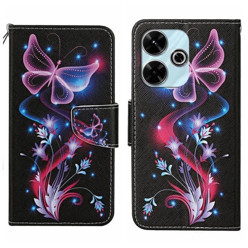 Funda de Cuero con Patrón de Dibujo de Colores para Xiaomi Redmi 13 4G (Mariposa Fluorescente)