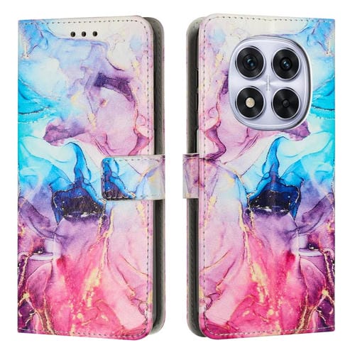 Funda de Cuero con Patrón de Mármol Pintado Global para Redmi Note 14 Pro 5G (Rosa y Morado)