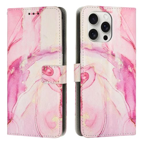 Funda de Cuero con Patrón de Mármol para iPhone 16 Pro (Oro Rosa)