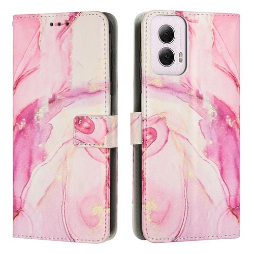 Funda de Cuero Motorola Moto G34 con Patrón de Mármol Pintado (Oro Rosa)