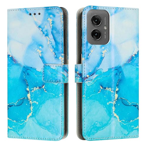 Funda de Cuero con Patrón de Mármol para Motorola Moto G55 5G (Azul y Verde)