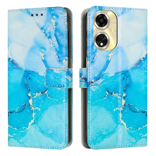 Funda de Cuero con Patrón de Mármol Pintado para Teléfono Oppo A59 5G Global (Azul Verde)