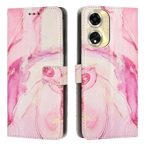 Funda de Cuero con Patrón de Mármol Pintado para Teléfono Oppo A59 5G Global (Oro Rosa)