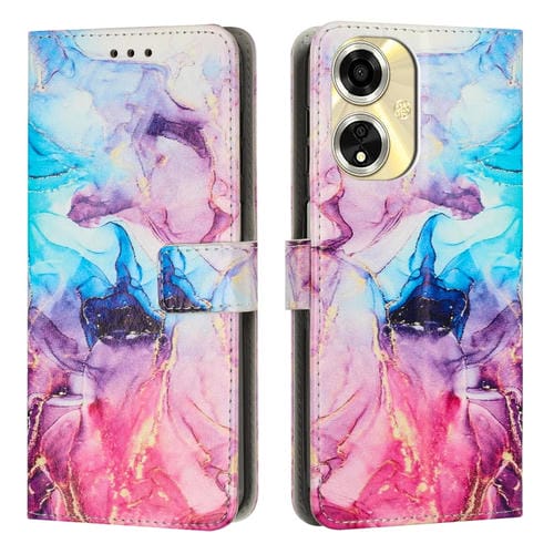 Funda de Cuero con Patrón de Mármol Pintado para Teléfono Oppo A59 5G Global (Rosa y Morado)