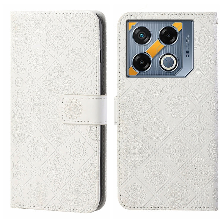 Funda de Cuero con Patrón en Relieve Estilo Étnico para Infinix GT 20 Pro (Blanca)